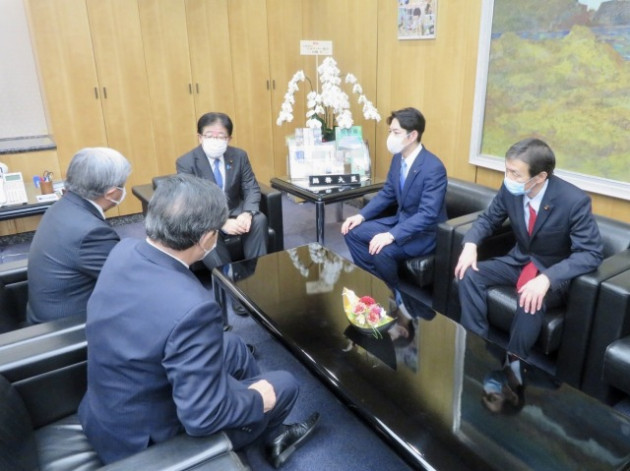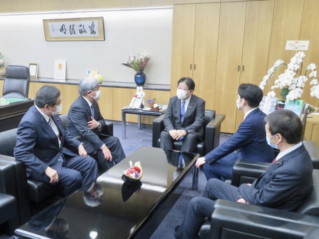 北海道・鈴木知事、北海道町村会・棚野会長 来室(総務大臣室)