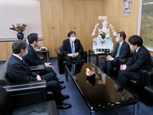 総務大臣・副大臣・大臣政務官 打合せ(総務大臣室)