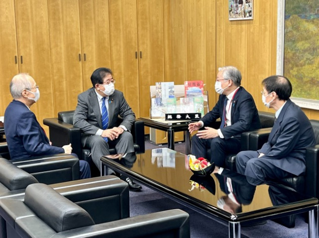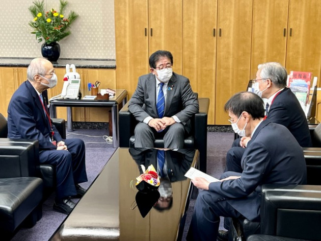 日本私立中学高等学校連合会・吉田 会長、近藤 副会長、福島 常務理事事務局長 来室(総務大臣室)
