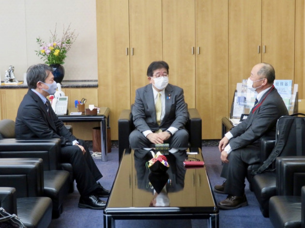 日本養蜂協会・西岡 理事〔熊本県養蜂組合長〕、枝次 監事〔大分県養蜂組合長〕 来室(総務大臣室)