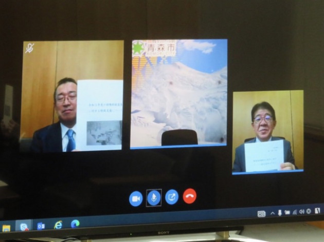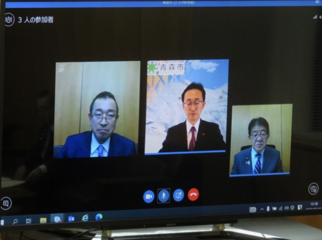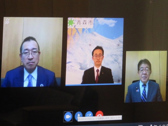 青森市・小野寺市長 オンライン要望(総務省) ※津島代議士 同席