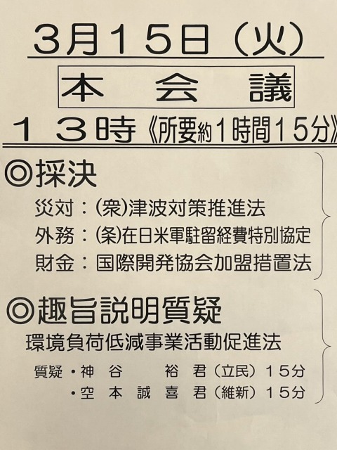 衆議院本会議「議了処理、環境負荷低減事業活動促進法 趣旨説明・質疑」