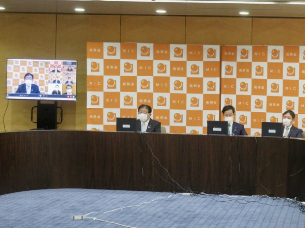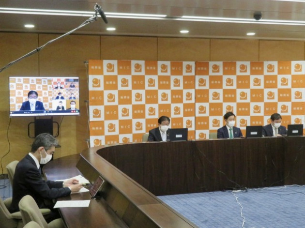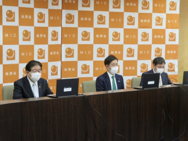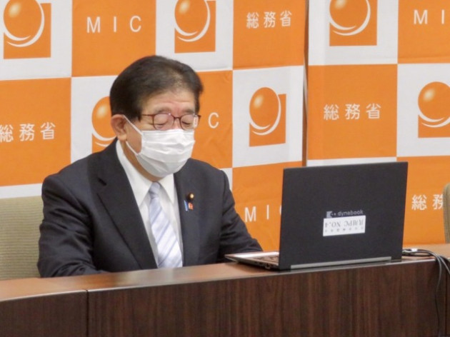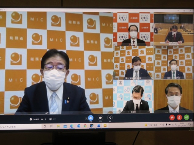 金子総務大臣・田畑副大臣・鳩山大臣政務官「全国知事会・平井会長〔鳥取県知事〕、濵田高知県知事、内堀福島県知事との意見交換〔オンライン〕」(総務省)