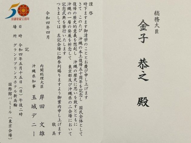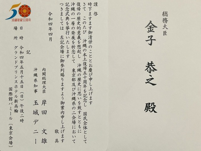 沖縄本土復帰50周年記念式典(グランドプリンスH新高輪)