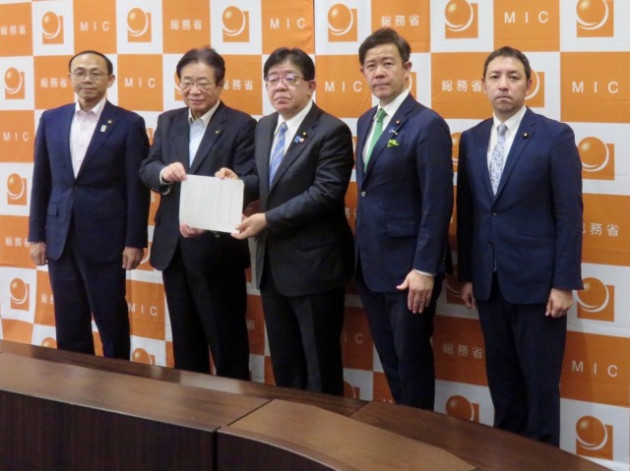 全国市長会・立谷会長(福島県相馬市長)、池田 宮崎県都城市長へ要請・意見交換(総務省) ※田畑副大臣、鳩山大臣政務官 同席