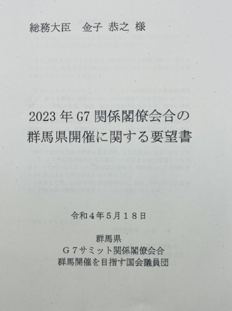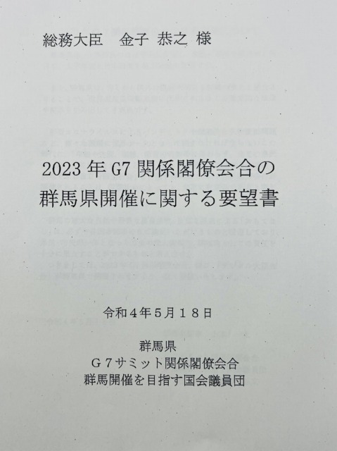 G7サミット関係閣僚会合群馬開催を目指す国会議員団「要請申し入れ」(総務大臣室)