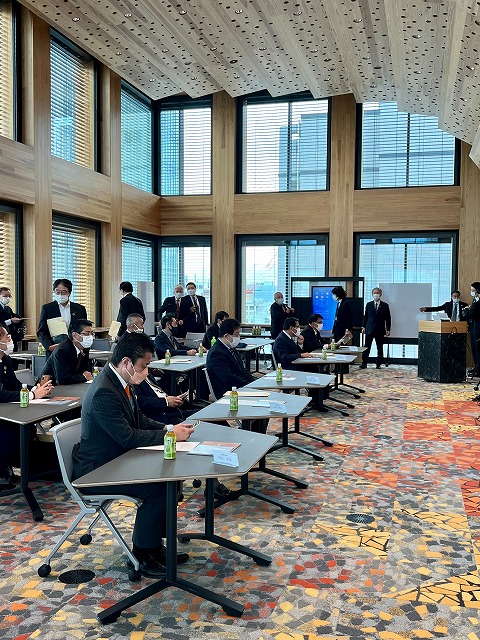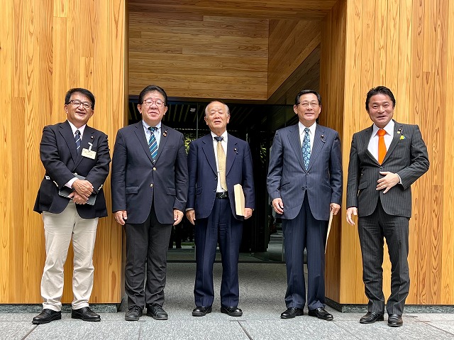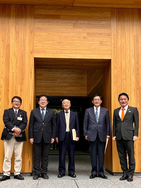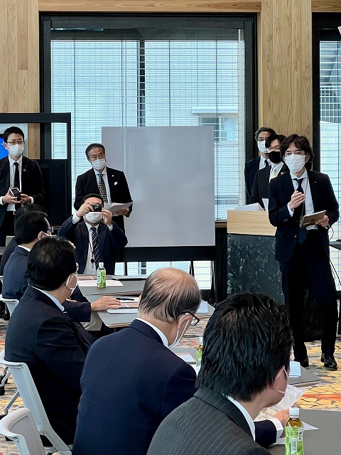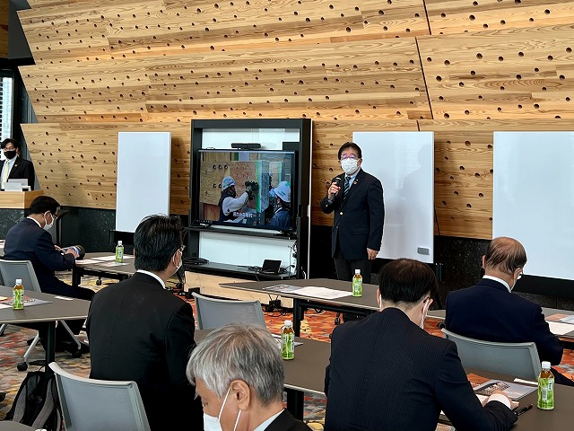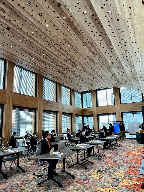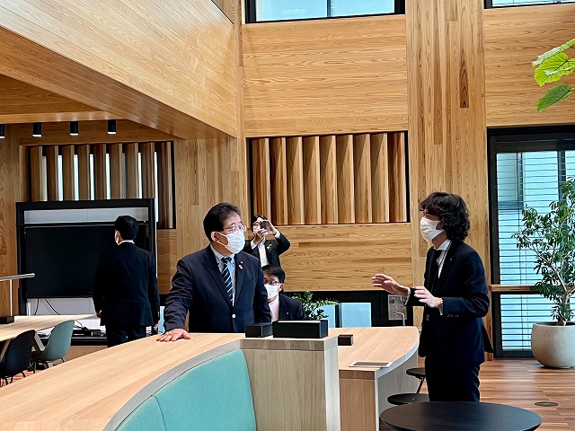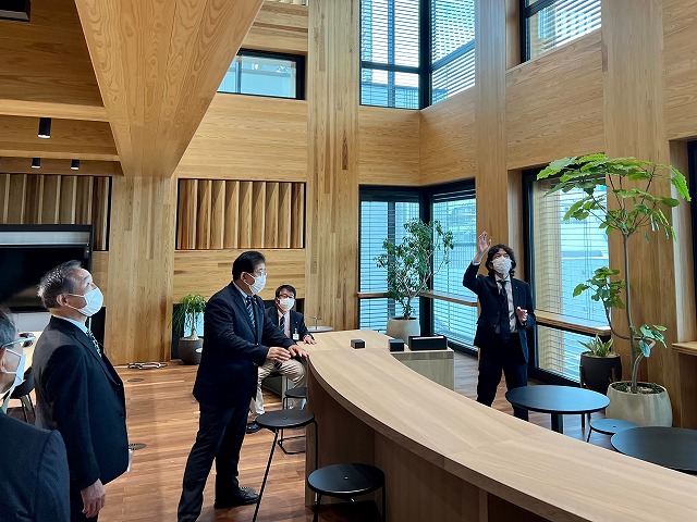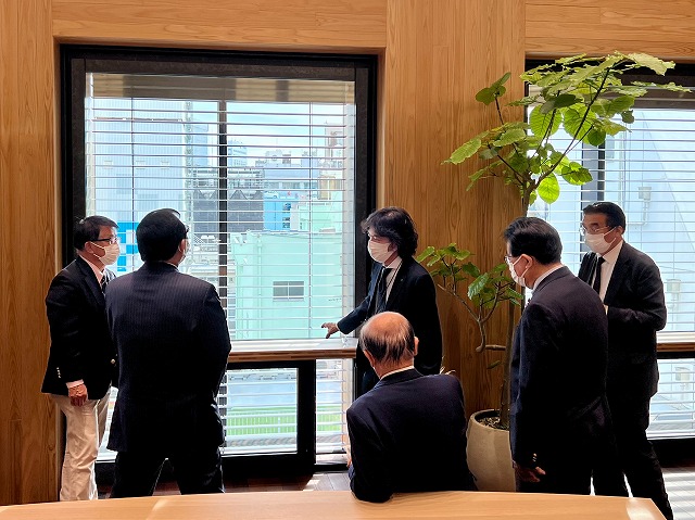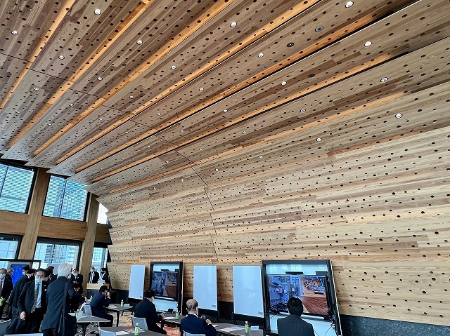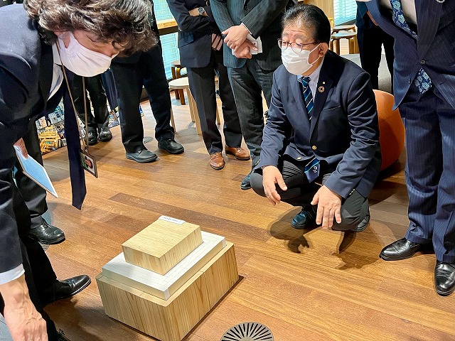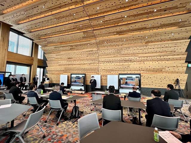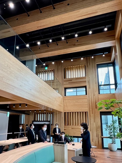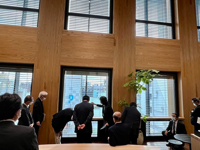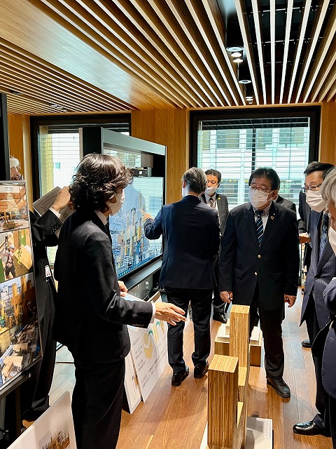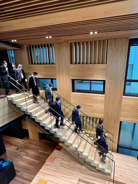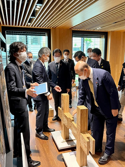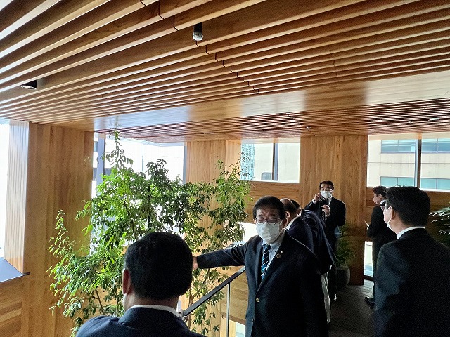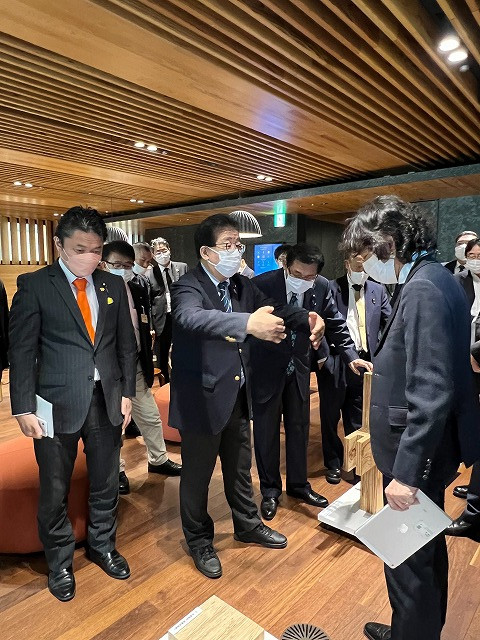 自民党 森林を活かす都市の木造化推進議員連盟「 日本初の高層純木造耐火建築物 (株)大林組「Port Plus」視察」(横浜市) ※幹事長
