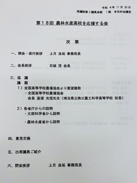 自民党 農林水産高校を応援する会 ※幹事長代理