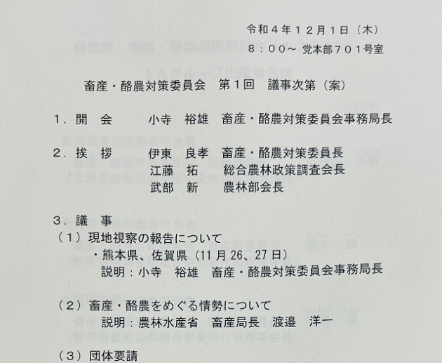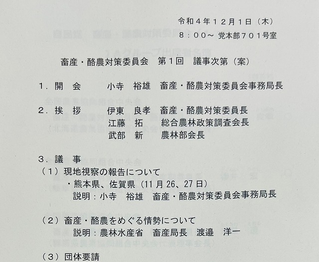 自民党 畜産・酪農対策委員会