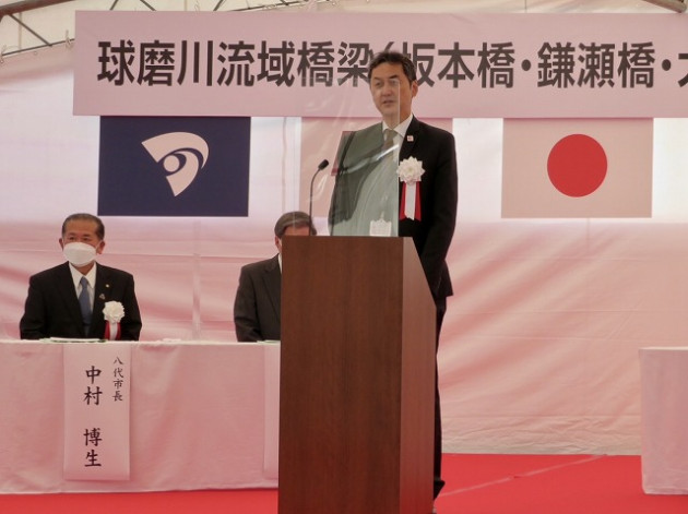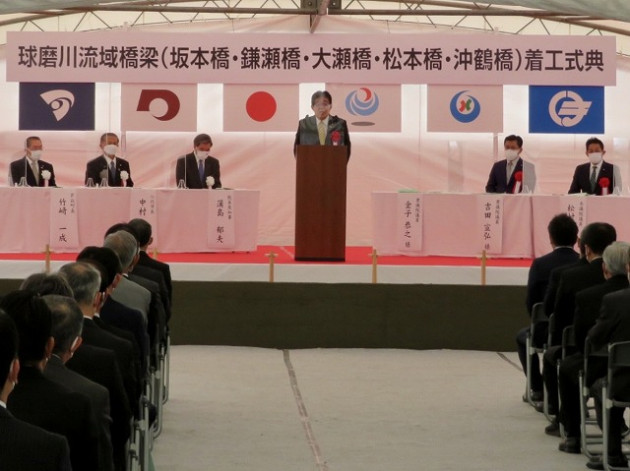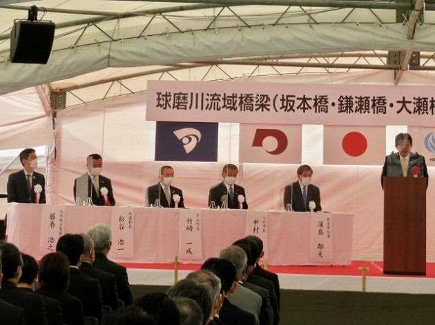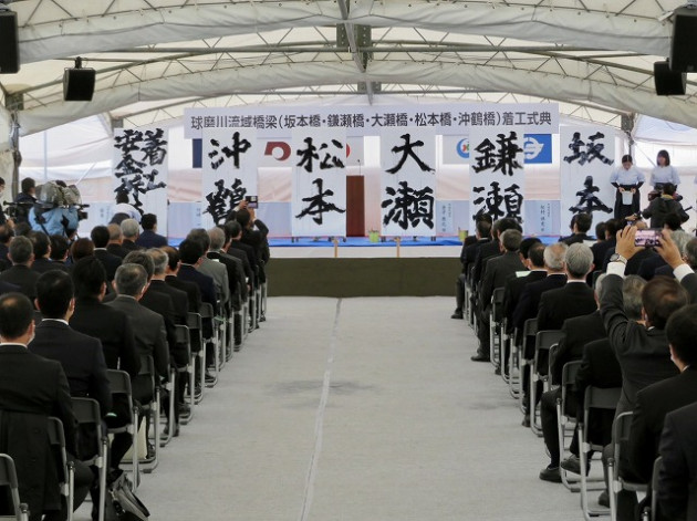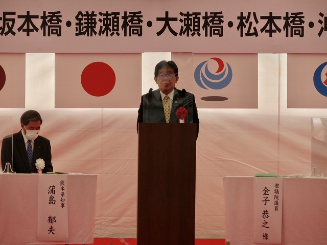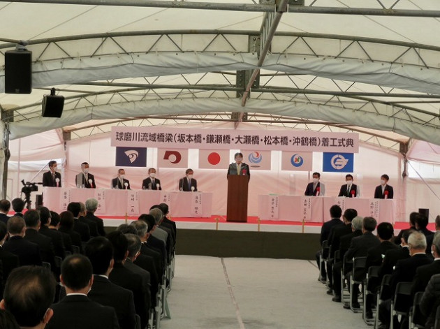 球磨川流域橋梁〔 坂本橋・鎌瀬橋・大瀬橋・松本橋・沖鶴橋 〕着工式典( 八代市・旧 グリーンパークさかもと( 旧 坂本支所付近 ) )
