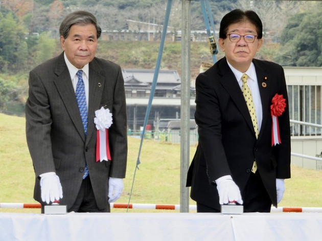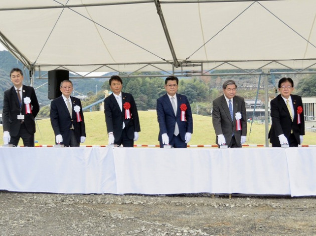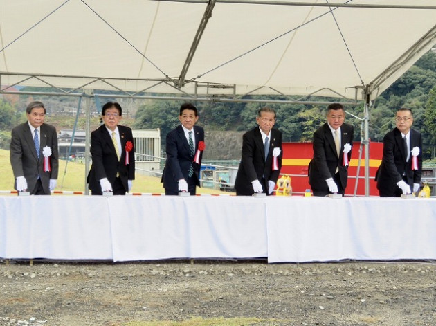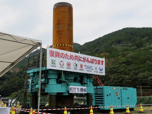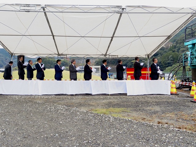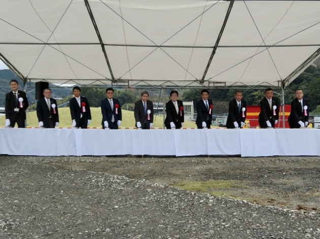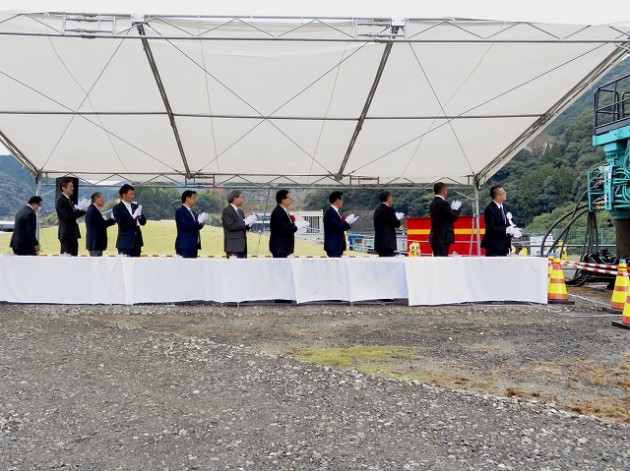 球磨川流域橋梁〔 坂本橋・鎌瀬橋・大瀬橋・松本橋・沖鶴橋 〕着工式典( 八代市・旧 グリーンパークさかもと( 旧 坂本支所付近 ) )※重機始動