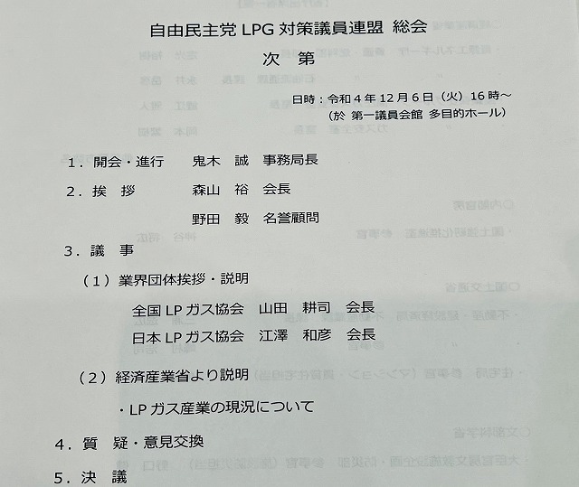 自民党 LPG対策議員連盟「 総会 」※常任幹事