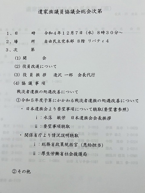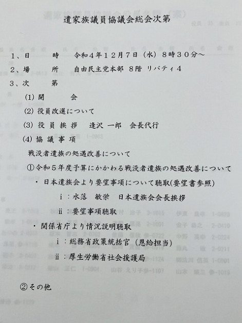 自民党 遺家族議員協議会「 総会 」 ※幹事