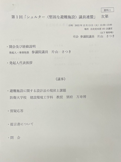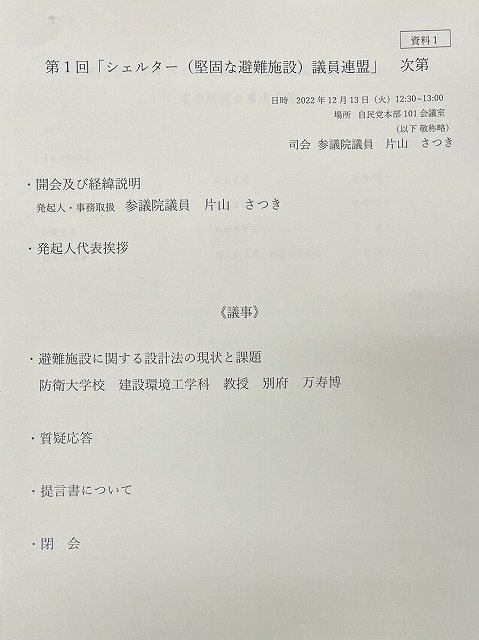 自民党 第1回「 シェルター(堅固な避難施設)議員連盟 」 ※発起人