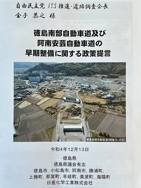 徳島県「 徳島南部自動車道及び阿南安芸自動車道の早期整備に関する政策提言 」自民党ITS推進・道路調査会長へ要望( 自民党本部 ) ※ITS推進・道路調査会長