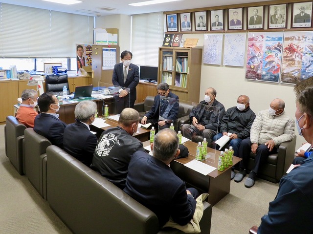 「 牛深漁港 」視察に伴う天草漁協牛深総合支所・熊本県海水養殖漁協との意見交換会( 天草市 牛深町・天草漁協 牛深総合支所 )※自民党漁港漁場漁村整備促進議員連盟 副会長
