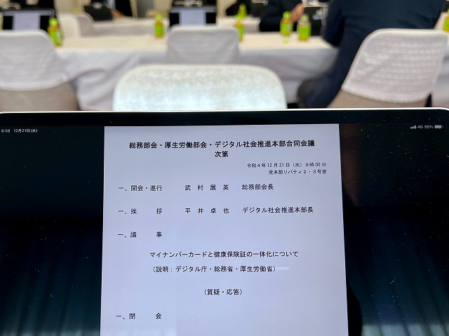 自民党 総務部会・厚生労働部会・デジタル社会推進本部 合同会議