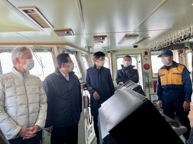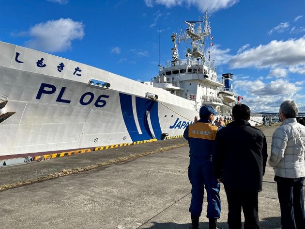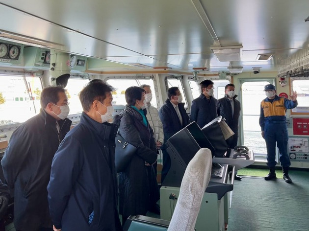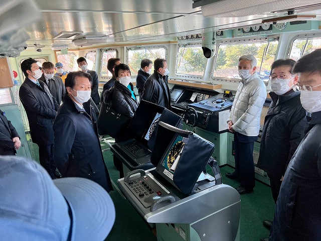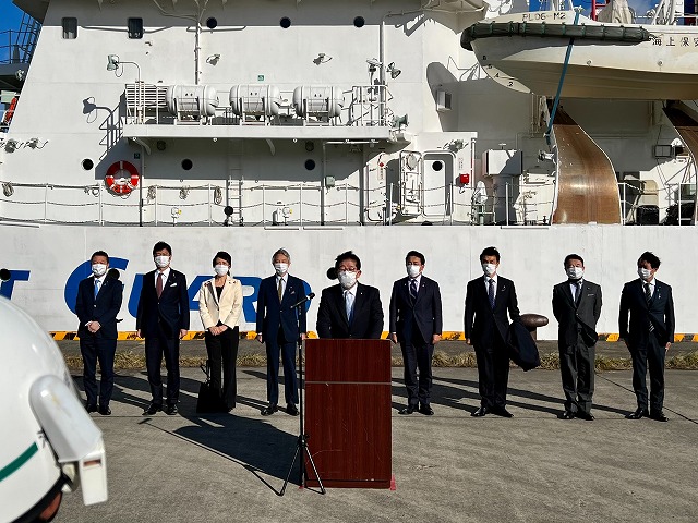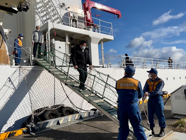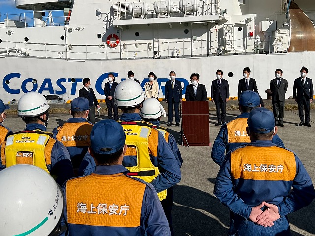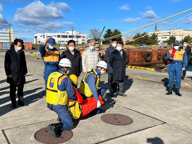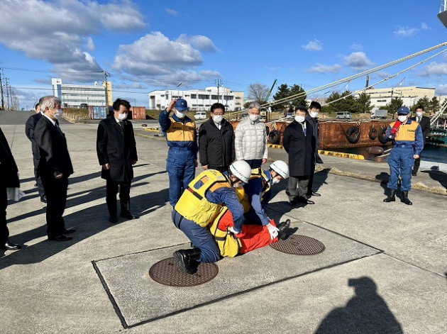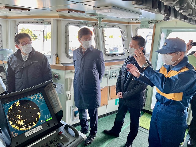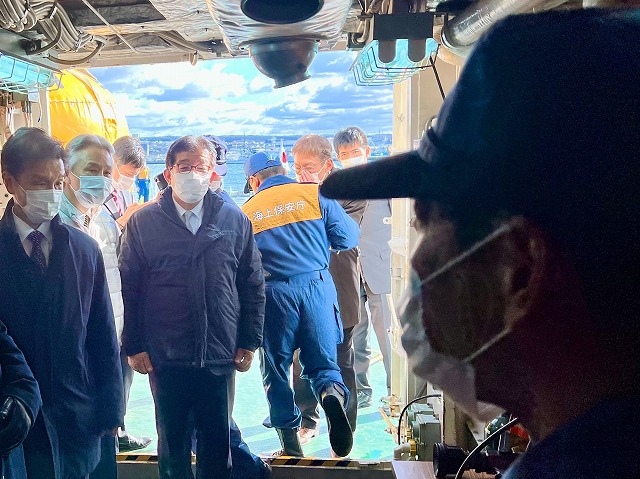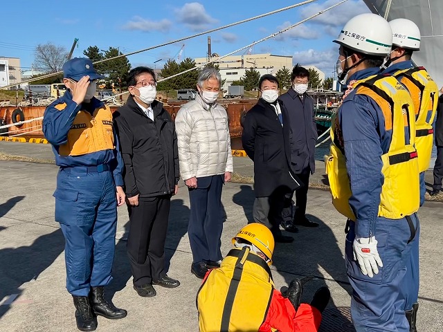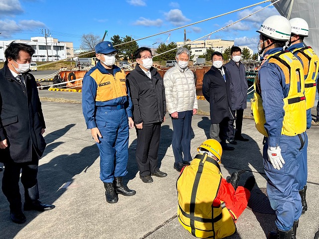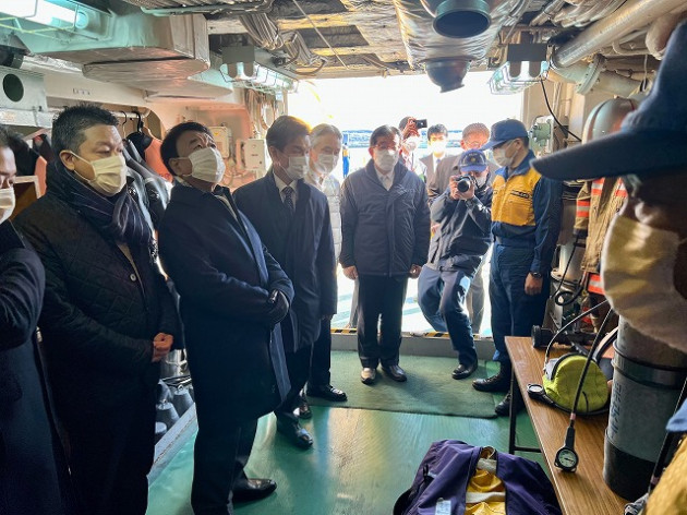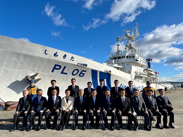 自民党 海上保安議員連盟『 海上保安業務 視察 ( 青森県 )②〔 第二管区海上保安本部 〕八戸海上保安部所属 巡視船「 しもきた 」視察( 船内、救難訓練展示、職員激励) 』※会長
