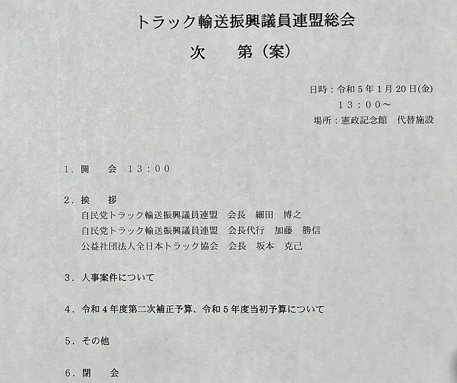 自民党 トラック輸送振興議員連盟 総会 ※副会長