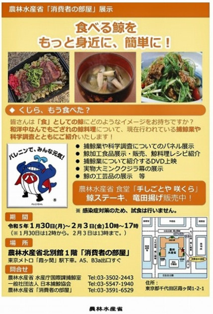 農林水産省「 消費者の部屋 」展示『 食べる鯨を もっと身近に、簡単に! 』視察・『 鯨料理 』実食( 農林水産省 北別館 1F「 消費者の部屋 」 )