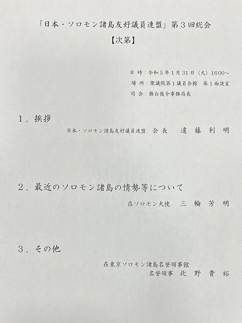 日本・ソロモン諸島友好議員連盟 総会 ※副会長