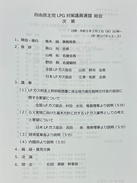 自民党 LPG対策議員連盟 総会 ※常任幹事