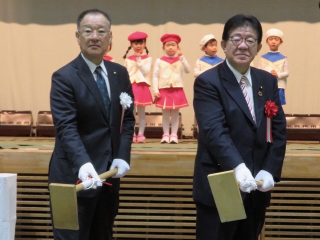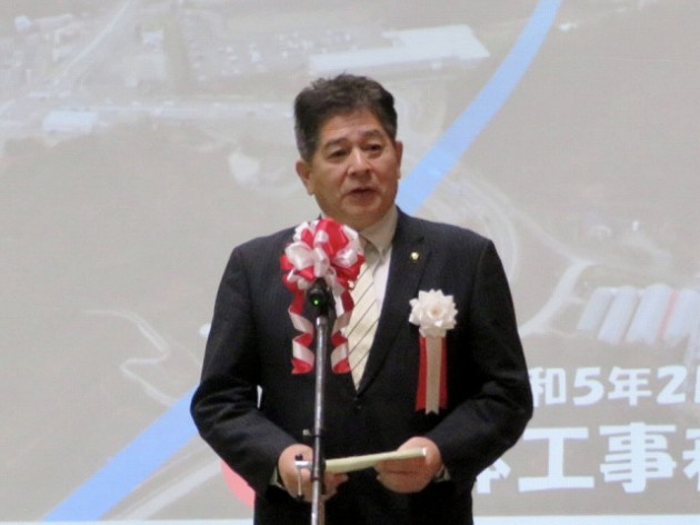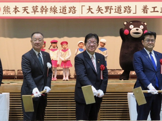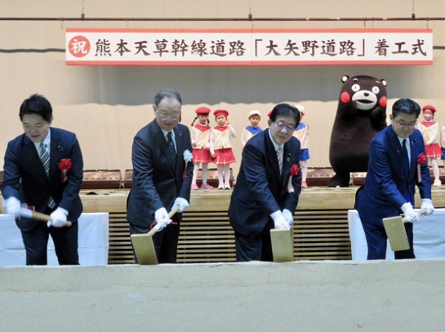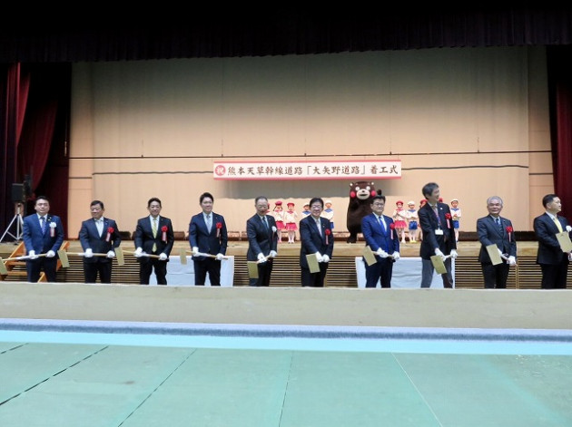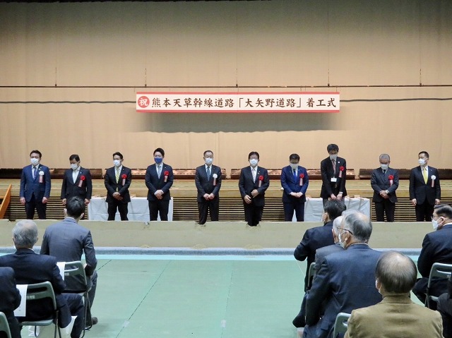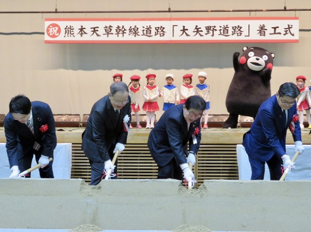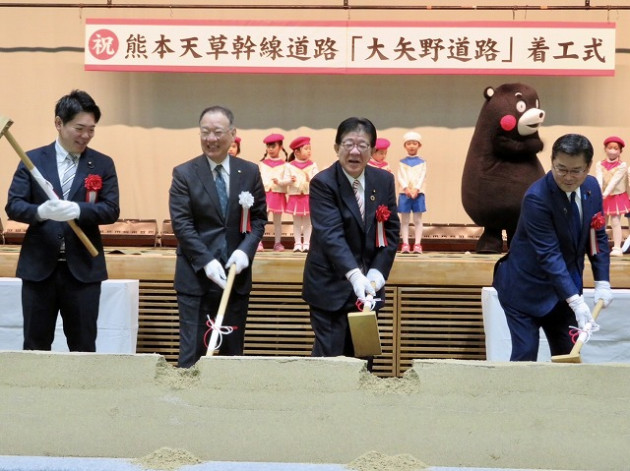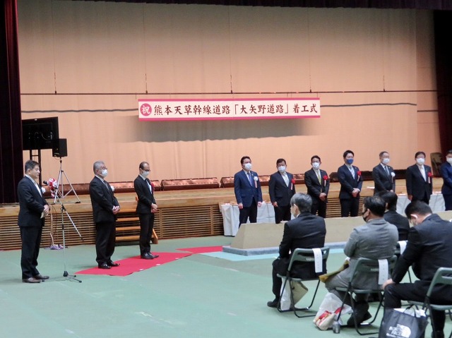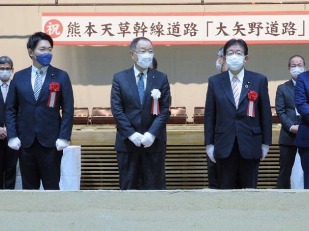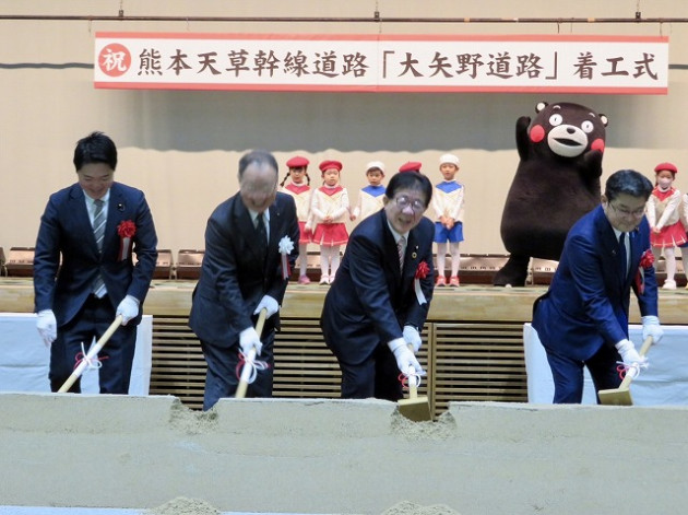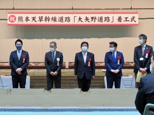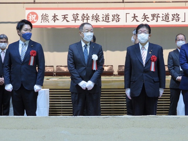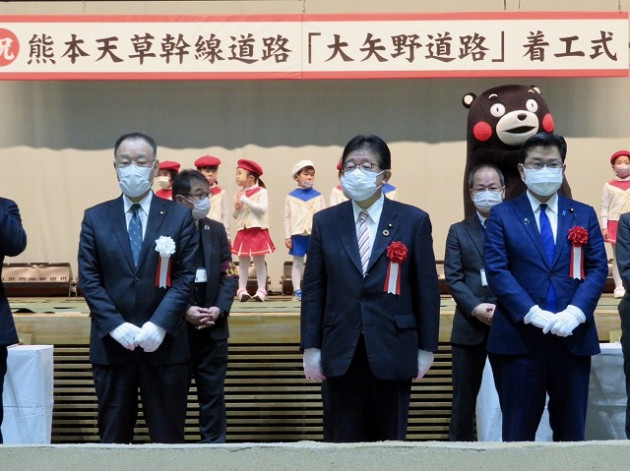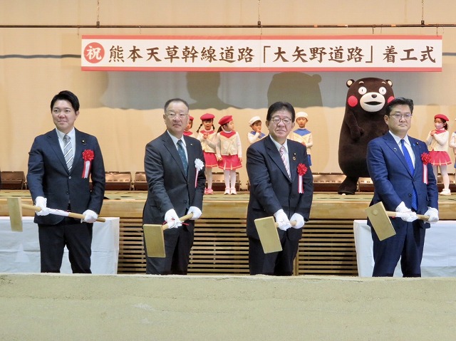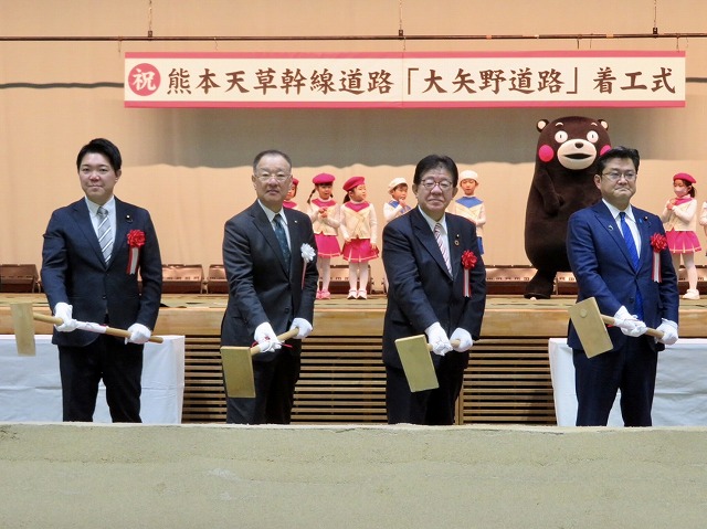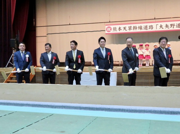 熊本天草幹線道路「 大矢野道路 」本体工事着工式( 上天草市・大矢野総合体育館 )※鍬入れ式