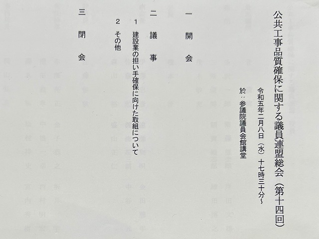 自民党 公共工事品質確保に関する議員連盟 総会 ※常任幹事