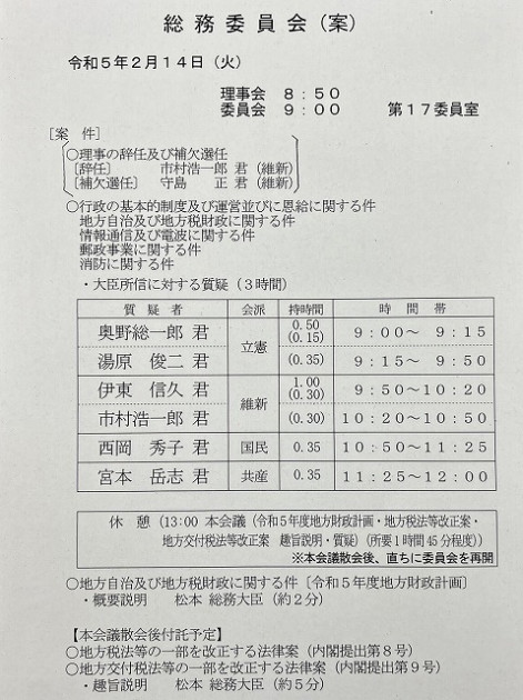 総務委員会「令和5年度 地方財政計画・地方税法改正案・地方交付税等改正案 趣旨説明」