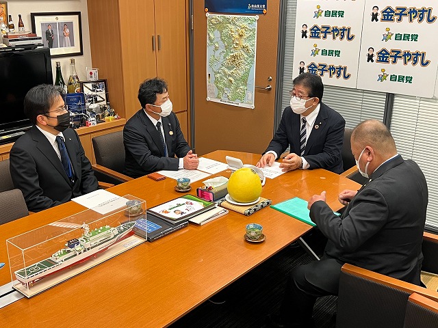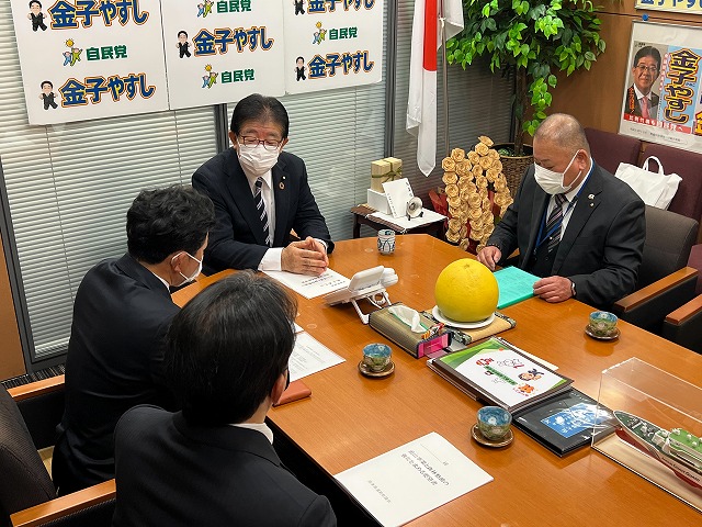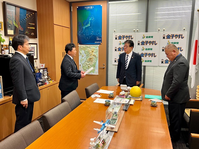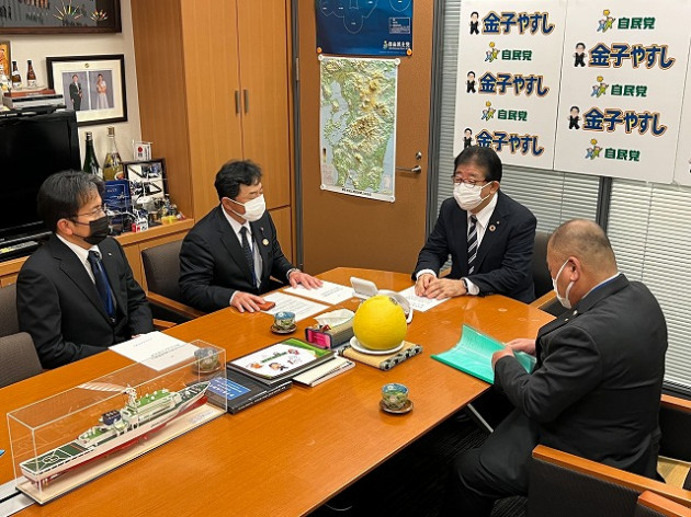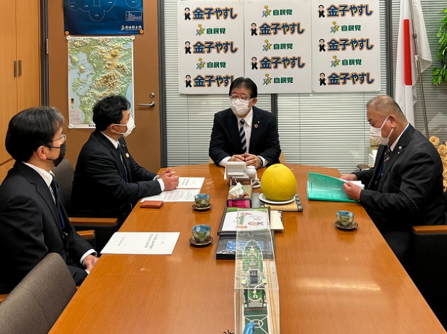 湯前町議会・金子議長、椎葉副議長、遠坂企画経済建設委員長 要望来室