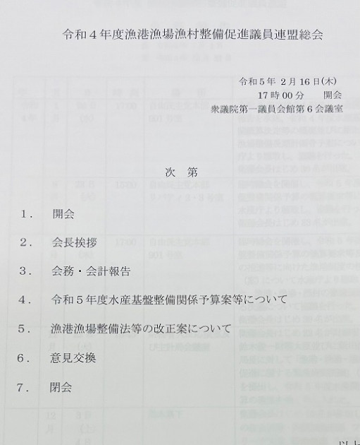 自民党 漁港漁場漁村整備促進議員連盟「総会」 ※副会長