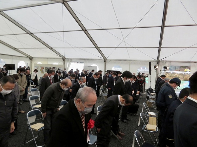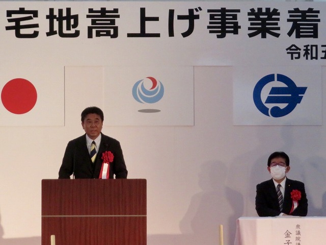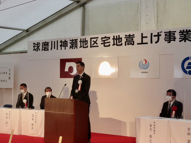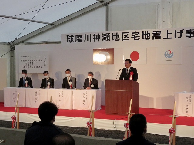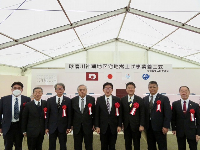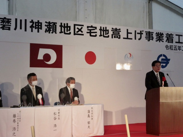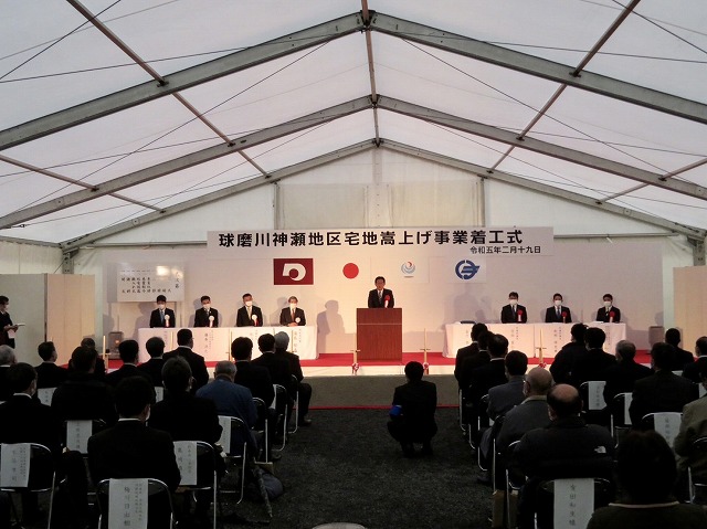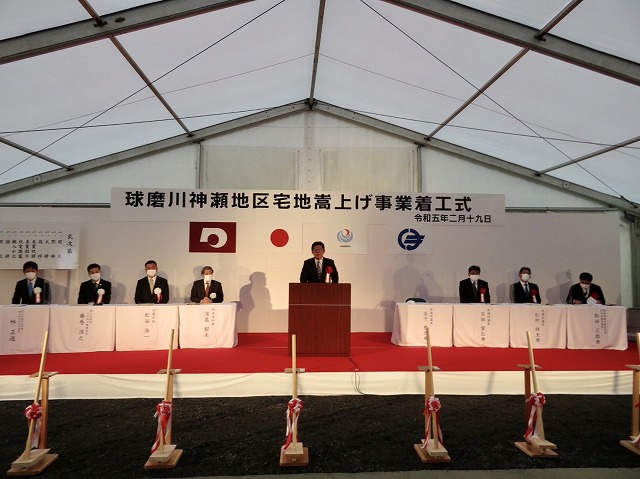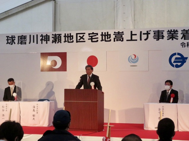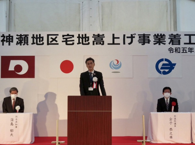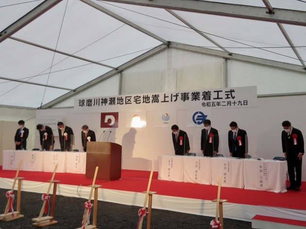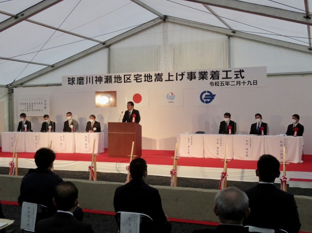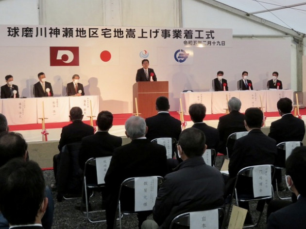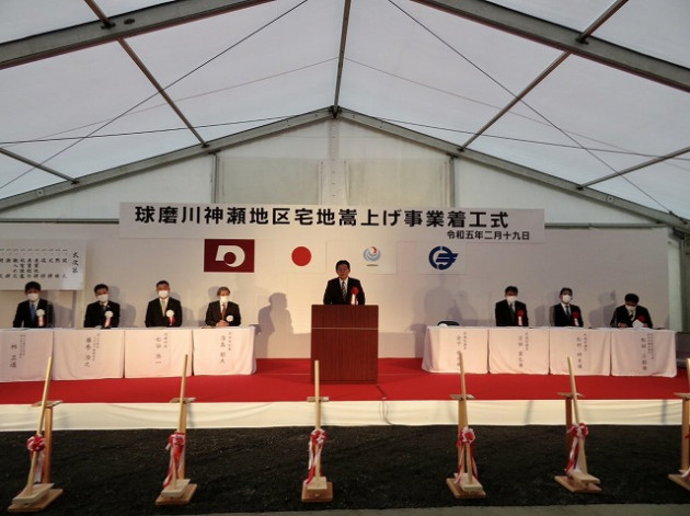 「 球磨川神瀬地区宅地嵩上げ事業 」着工式( 球磨村 神瀬 川内川下流左岸 )