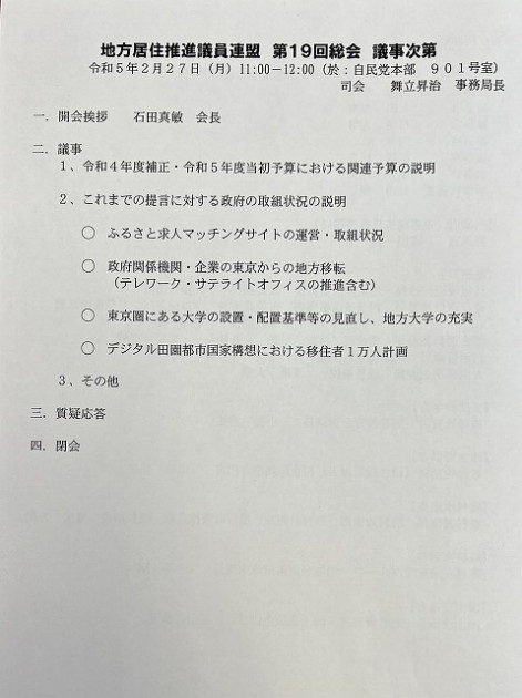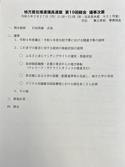 自民党 地方居住推進議員連盟 総会 ※副会長