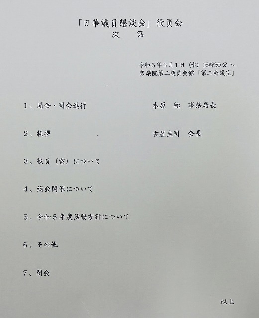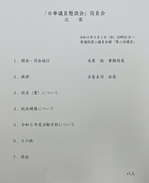 超党派 日華議員懇談会「 役員会 」 ※副幹事長