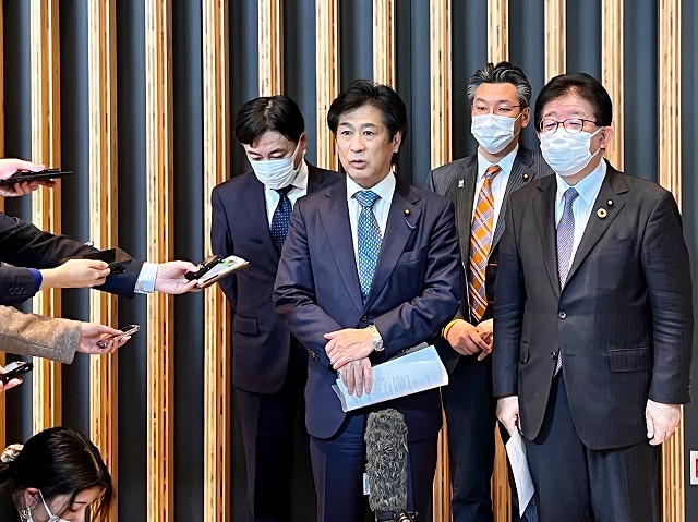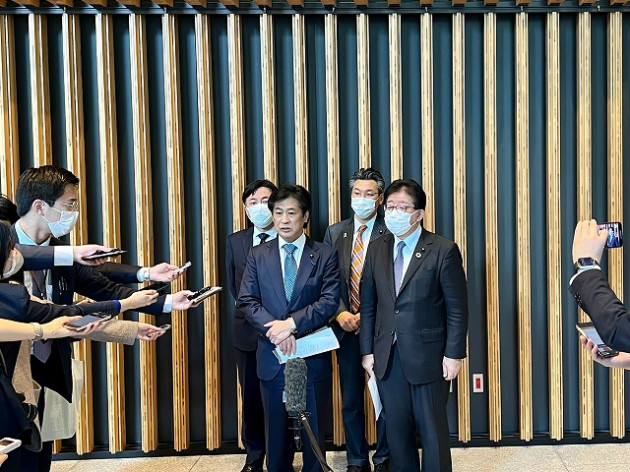 自民党 全国保育関係議員連盟 役員「 こども・子育て政策の強化に当たっての要望 」( 小倉將信 こども政策担当大臣 )要望後の記者ぶら下がり会見 ※幹事長