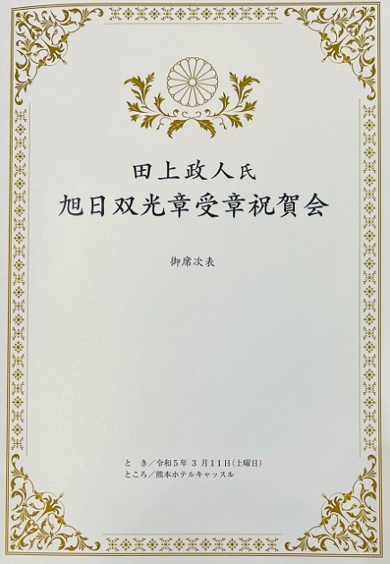 元 宇土市議会議員 田上政人氏「 旭日双光章 」受章祝賀会( 熊本市・熊本ホテルキャッスル )