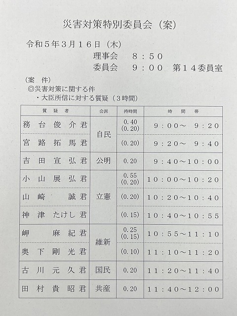 衆議院災害対策特別委員会「大臣所信に対する質疑 3時間」 ※与党筆頭理事