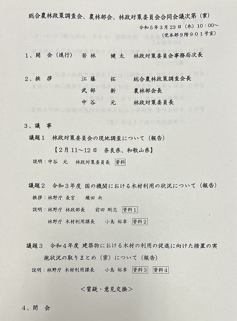 自民党 総合農林政策調査会、農林部会、林政対策委員会 合同会議