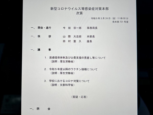 自民党 新型コロナウイルス等感染症対策本部