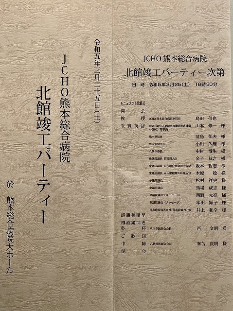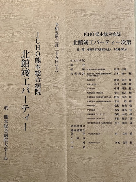 独立行政法人 地域医療機能推進機構〔JCHO〕熊本総合病院「 北館 竣工記念 」パーティー( 八代市・JCHO熊本総合病院 北館5F 大ホール )