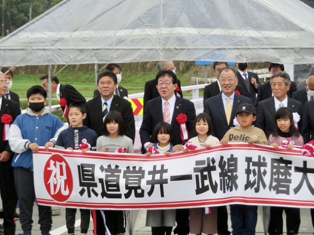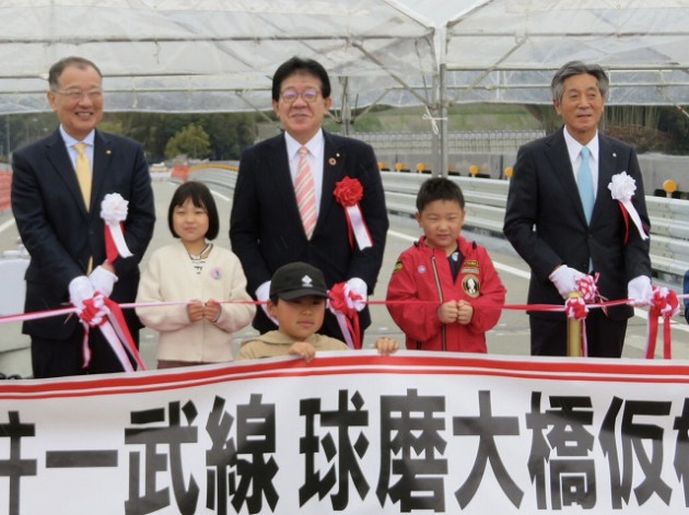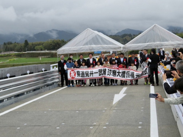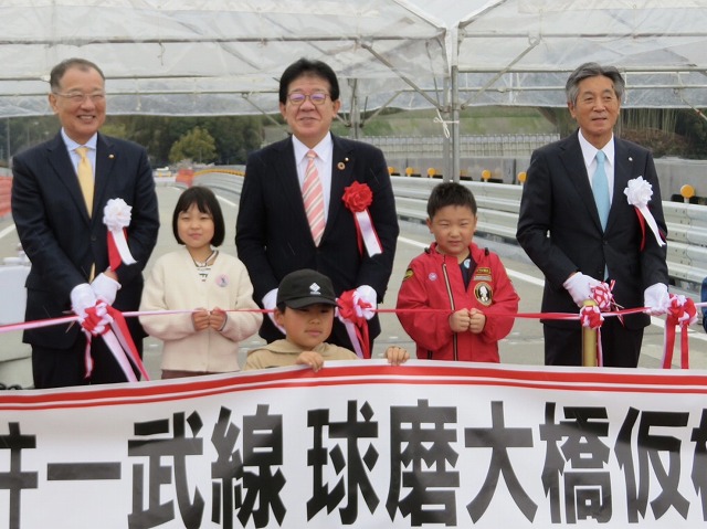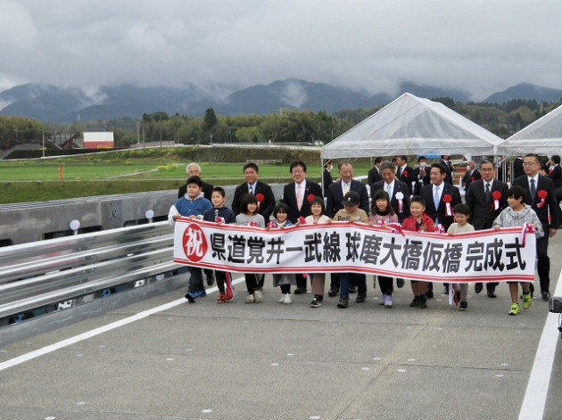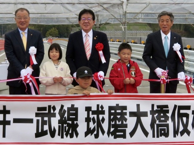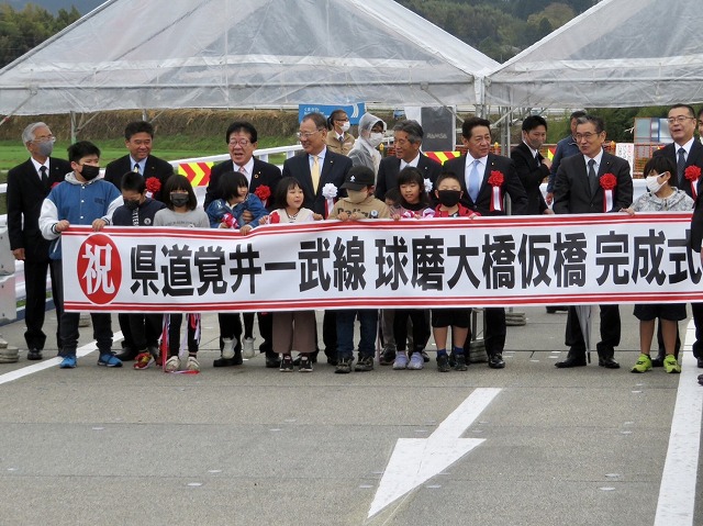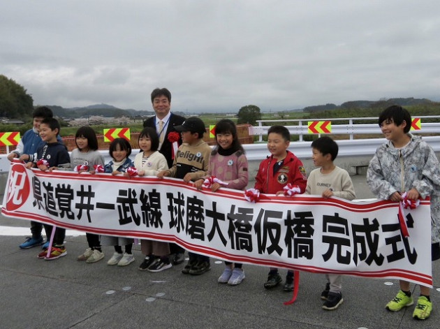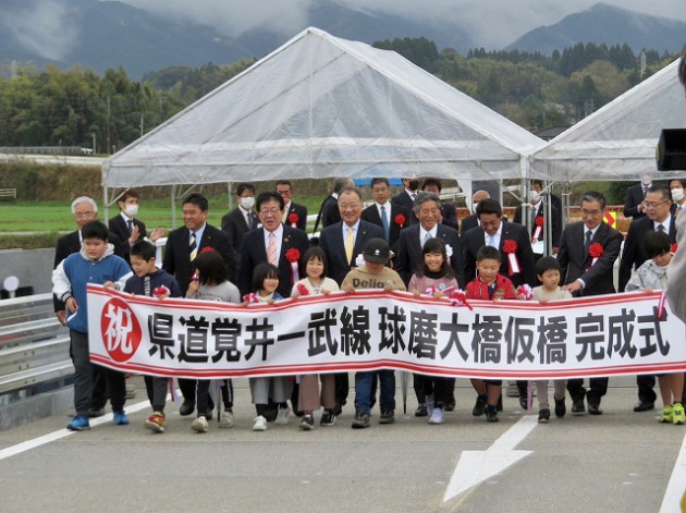 県道 覚井一武線「 球磨大橋 仮橋 」完成式 ※テープカット・渡り初め( 球磨大橋 左岸側橋梁上 錦町木上南地内 )