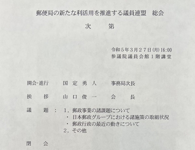 自民党 郵便局の新たな利活用を推進する議員連盟 総会