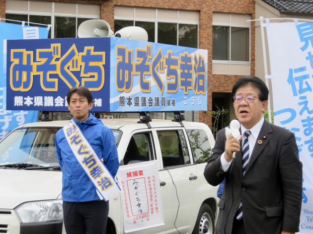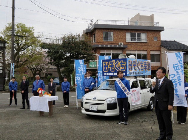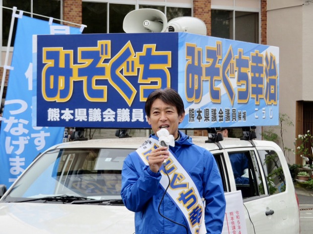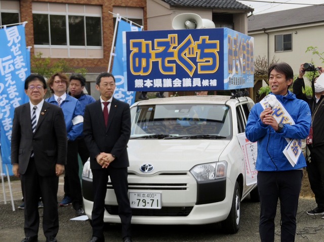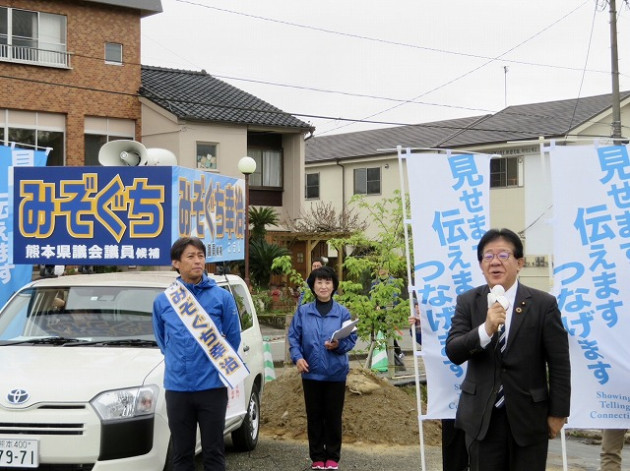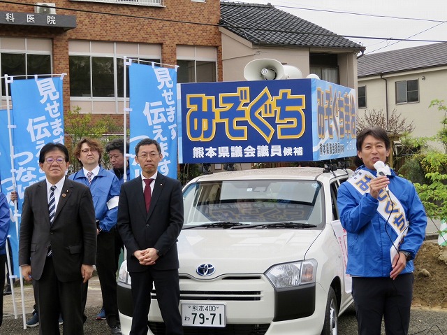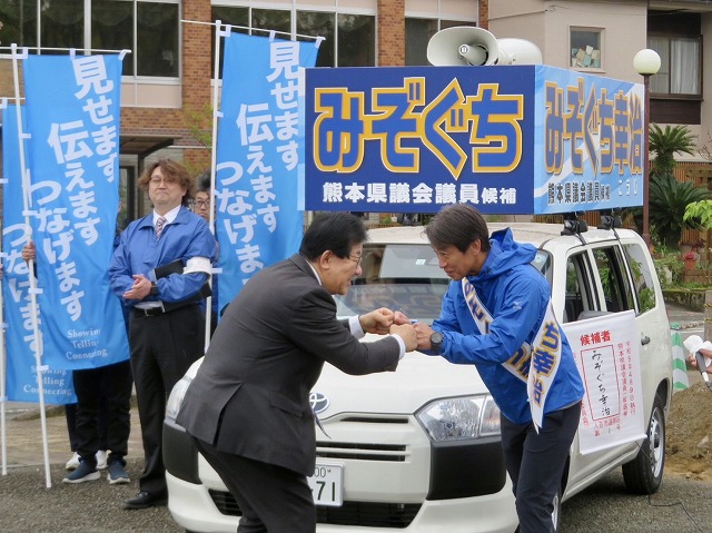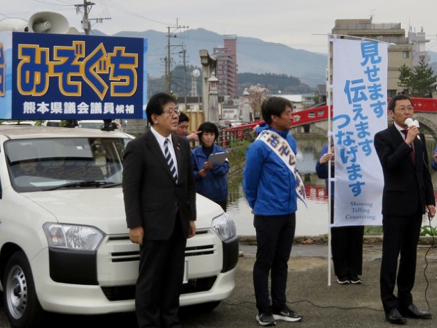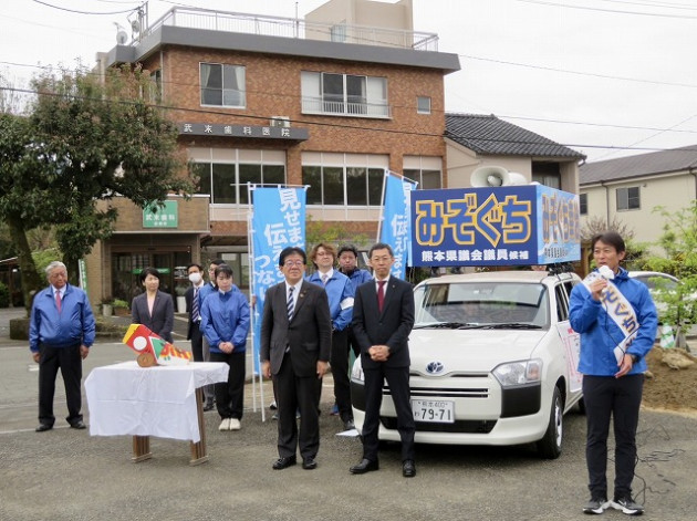 〔 熊本県議会議員 選挙 告示日 〕溝口幸治候補「 出陣式 」( 人吉市・青井阿蘇神社 蓮池横駐車場 )
