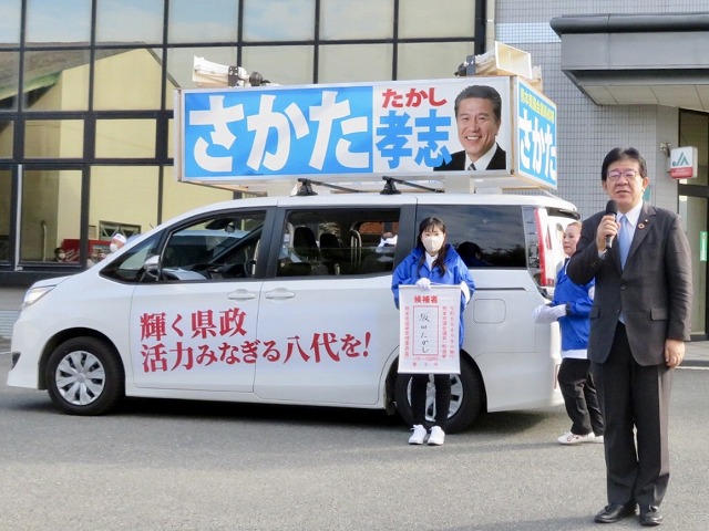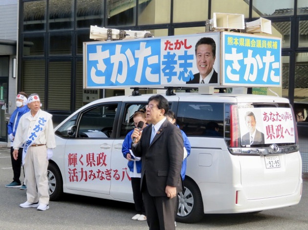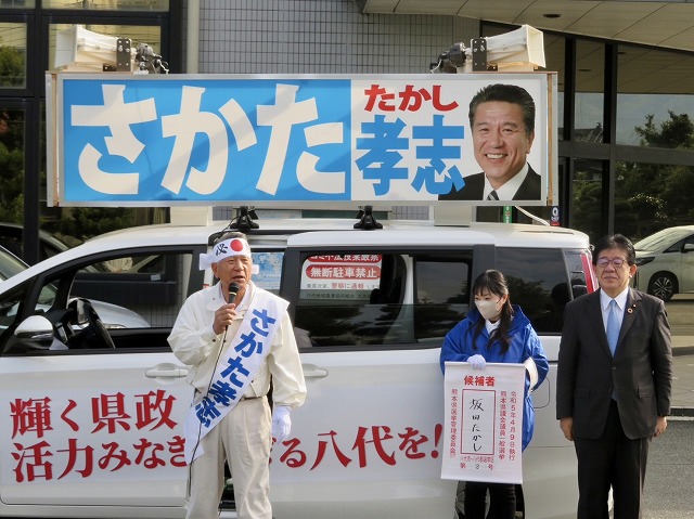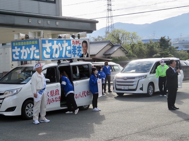 〔 熊本県議会議員 選挙 2日目 〕坂田孝志候補「 街頭演説 」( 八代市・JA太田郷支所前 )※応援弁士