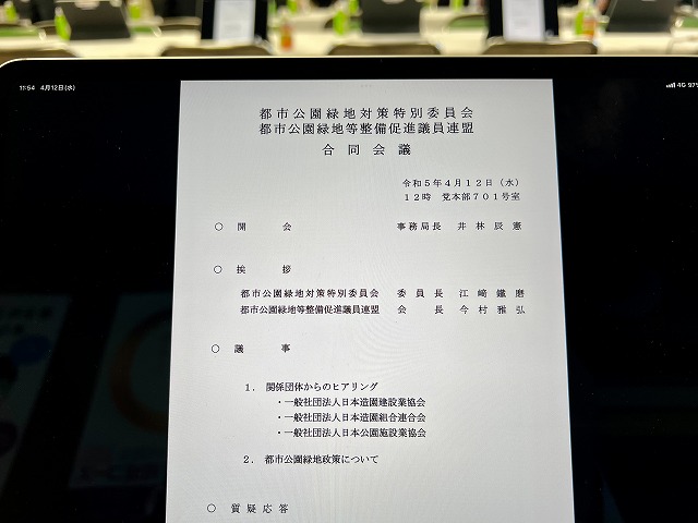 自民党 都市公園緑地対策特別委員会・都市公園緑地等整備促進議員連盟 合同会議