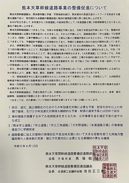 熊本天草間幹線道路整備促進期成会・熊本天草幹線道路整備促進協議会「熊本天草幹線道路の整備促進に関する要望」(国土交通省 道路局・久保田審議官)
