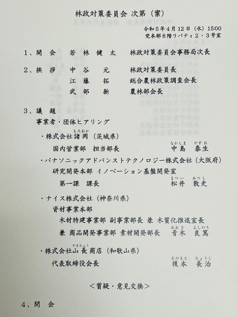 自民党 林政対策委員会