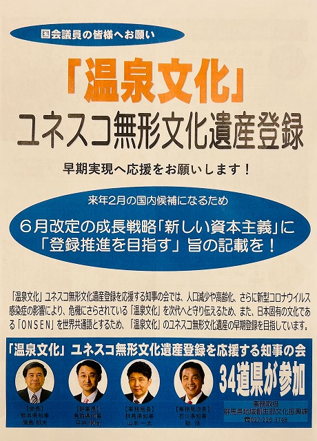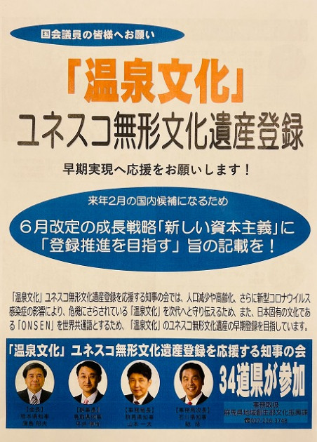 石川県・馳浩 知事 「 温泉文化 」ユネスコ無形文化遺産登録 早期実現 応援要請来室