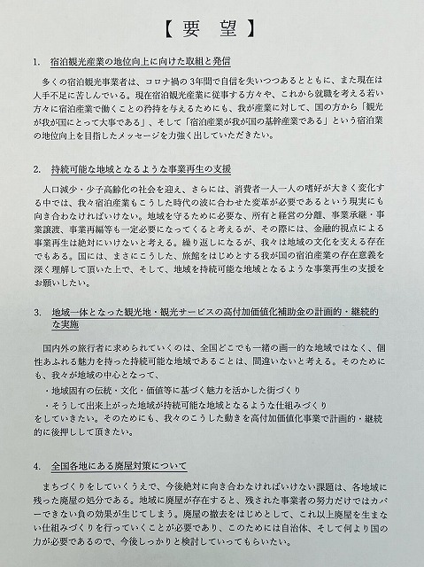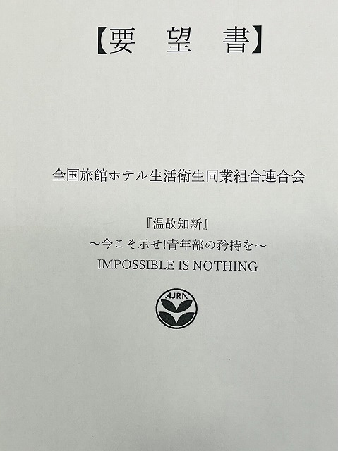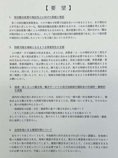 全国旅館ホテル生活衛生同業組合連合会青年部・瀬戸口 熊本県部長 要望来室