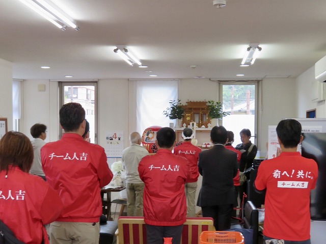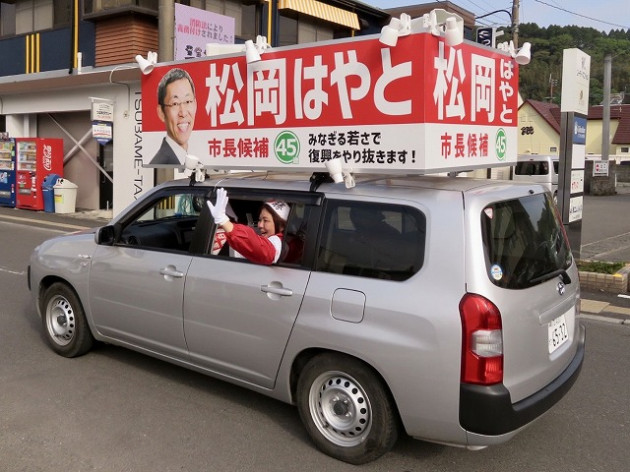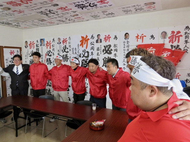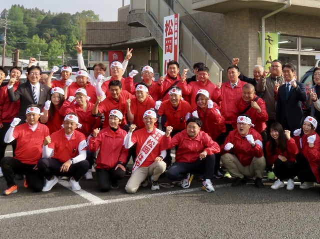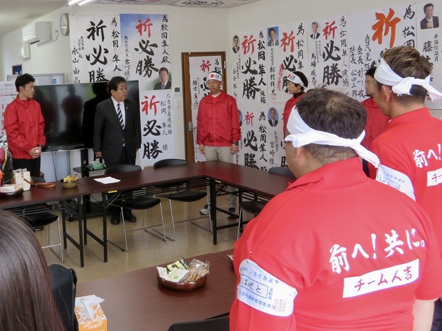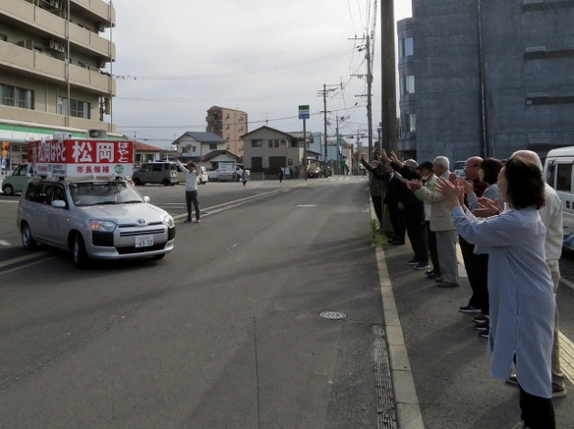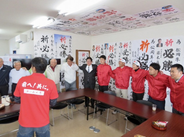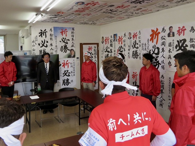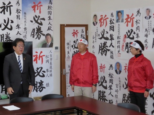 〔 人吉市長 選挙 最終日 〕松岡はやと候補「 出発式( 激励 )」( 人吉市・選挙事務所 )